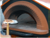 Na 1,5 uur stoken is de oven op bedrijfstemperatuur en bakken we een grote pizza in ca. 90 seconden.