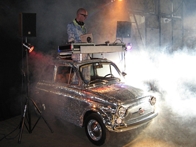 Dit rijdende disco-bolletje is uit te voeren met CD-spelers of draaitafels en we zetten er naar gelang de grootte van de zaal de juiste speakerset bij.