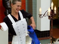 Zij maakt de gang langs het buffet een stuk aangenamer.
