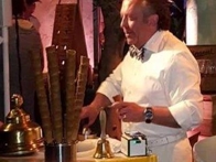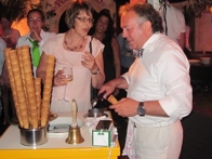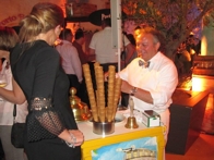 Viva Gelati loopt al zingend rond tussen de gasten met zijn kleine nostalgische verplaatsbare ijscokar.